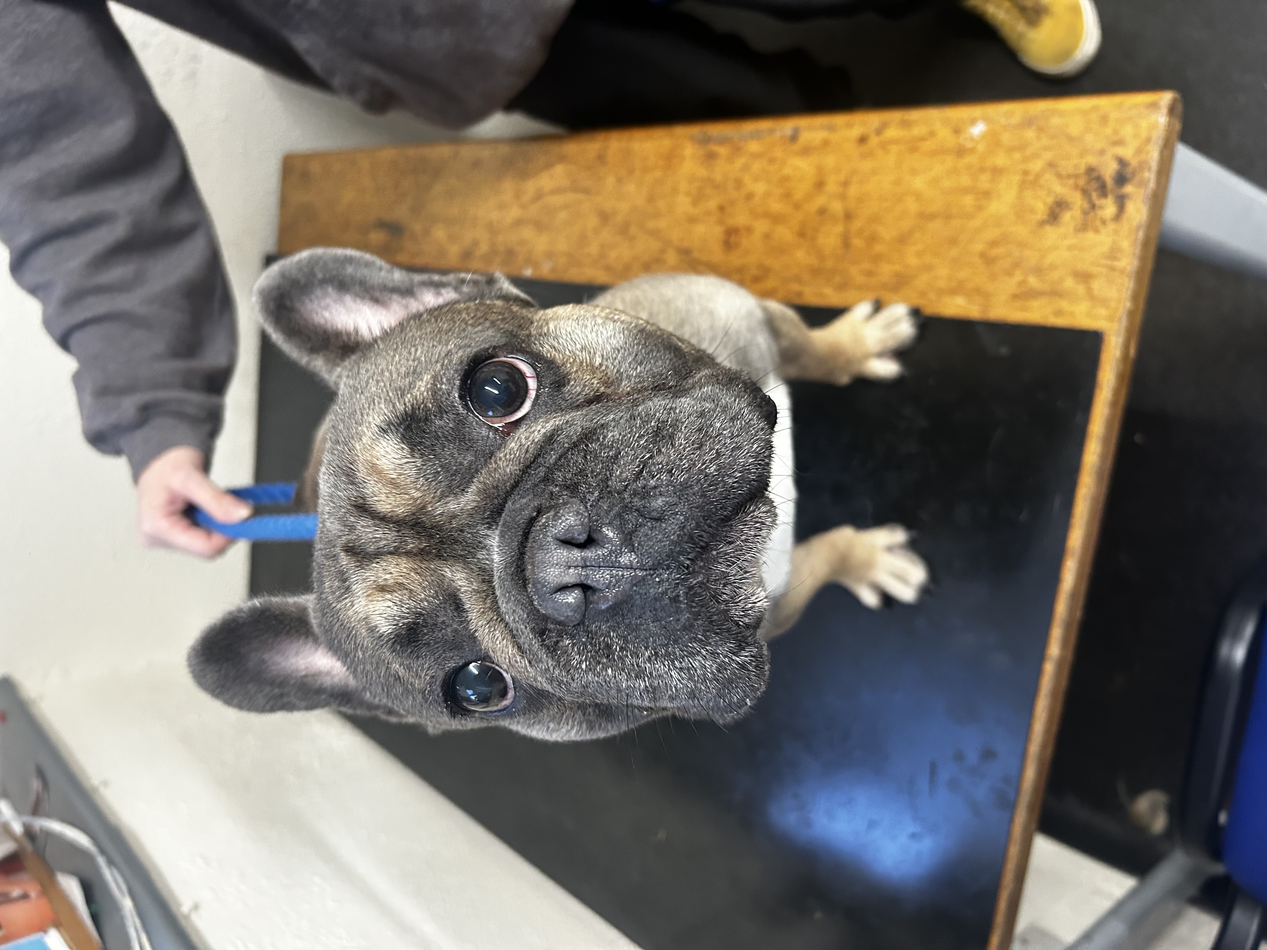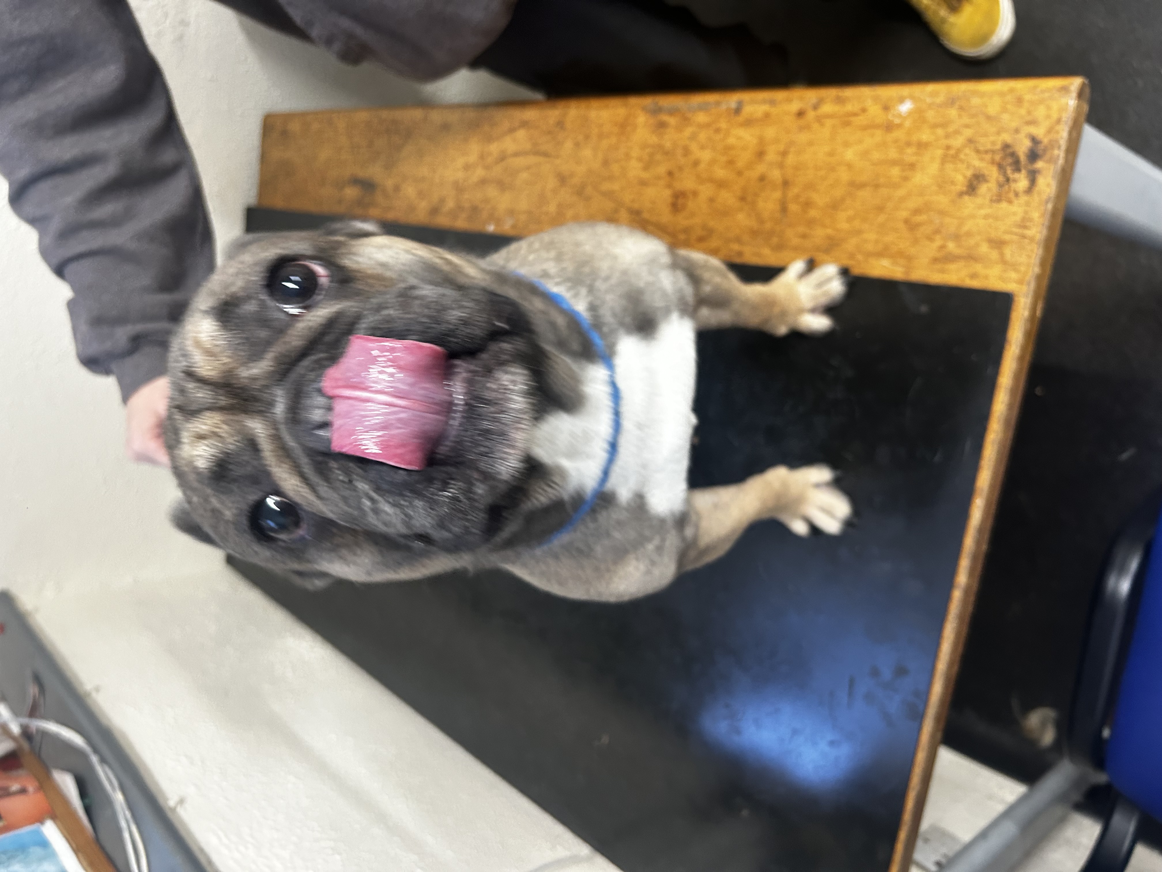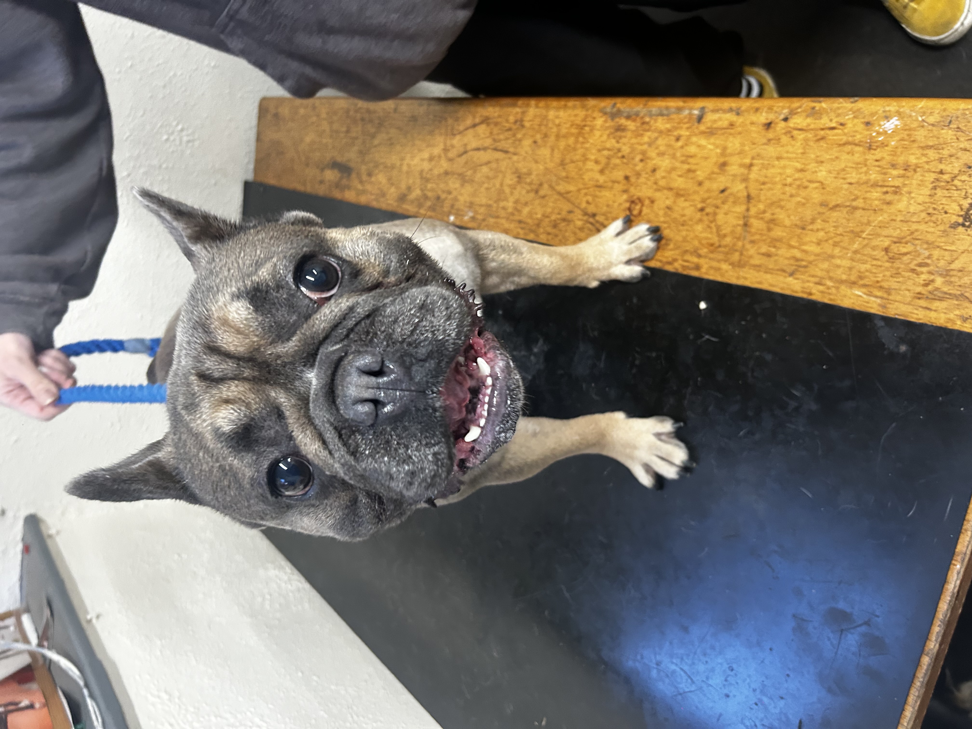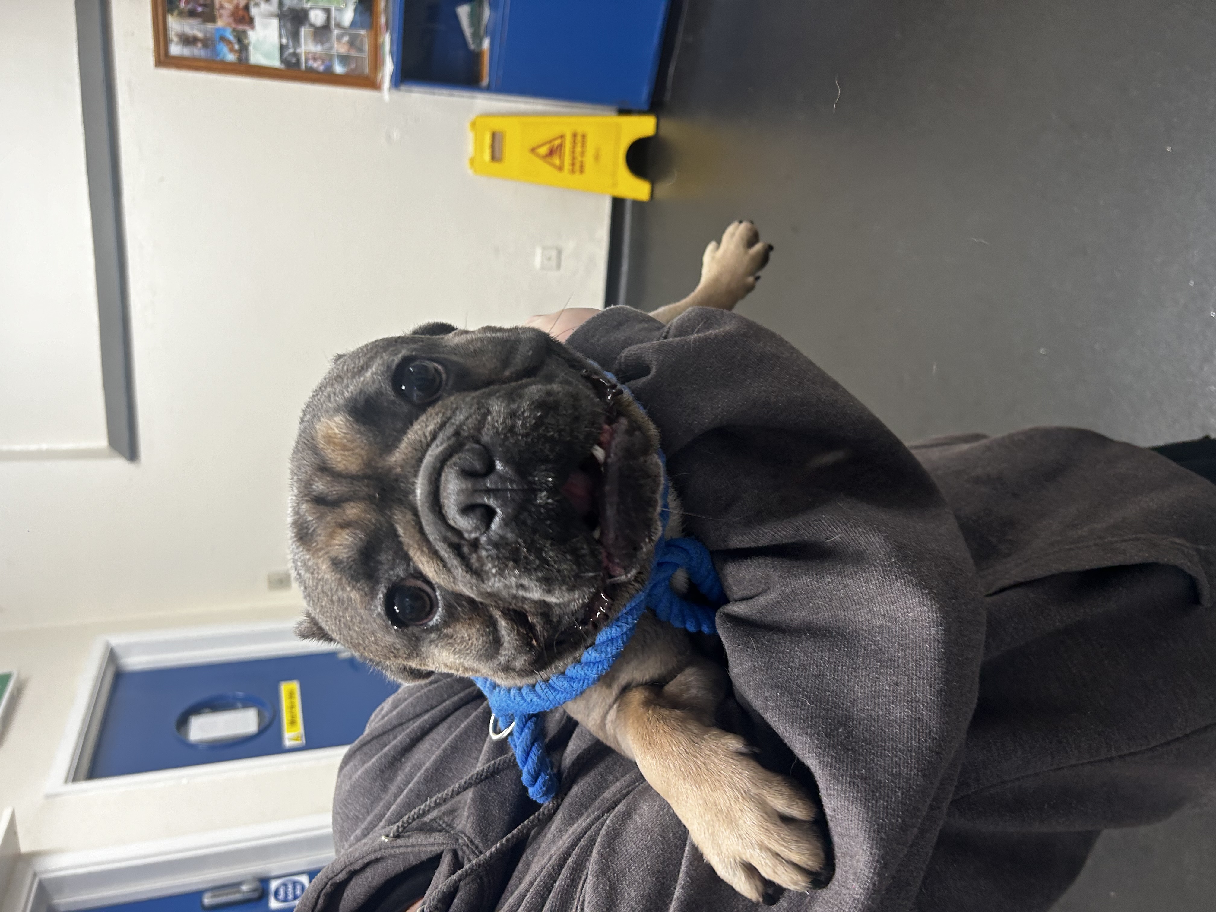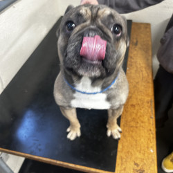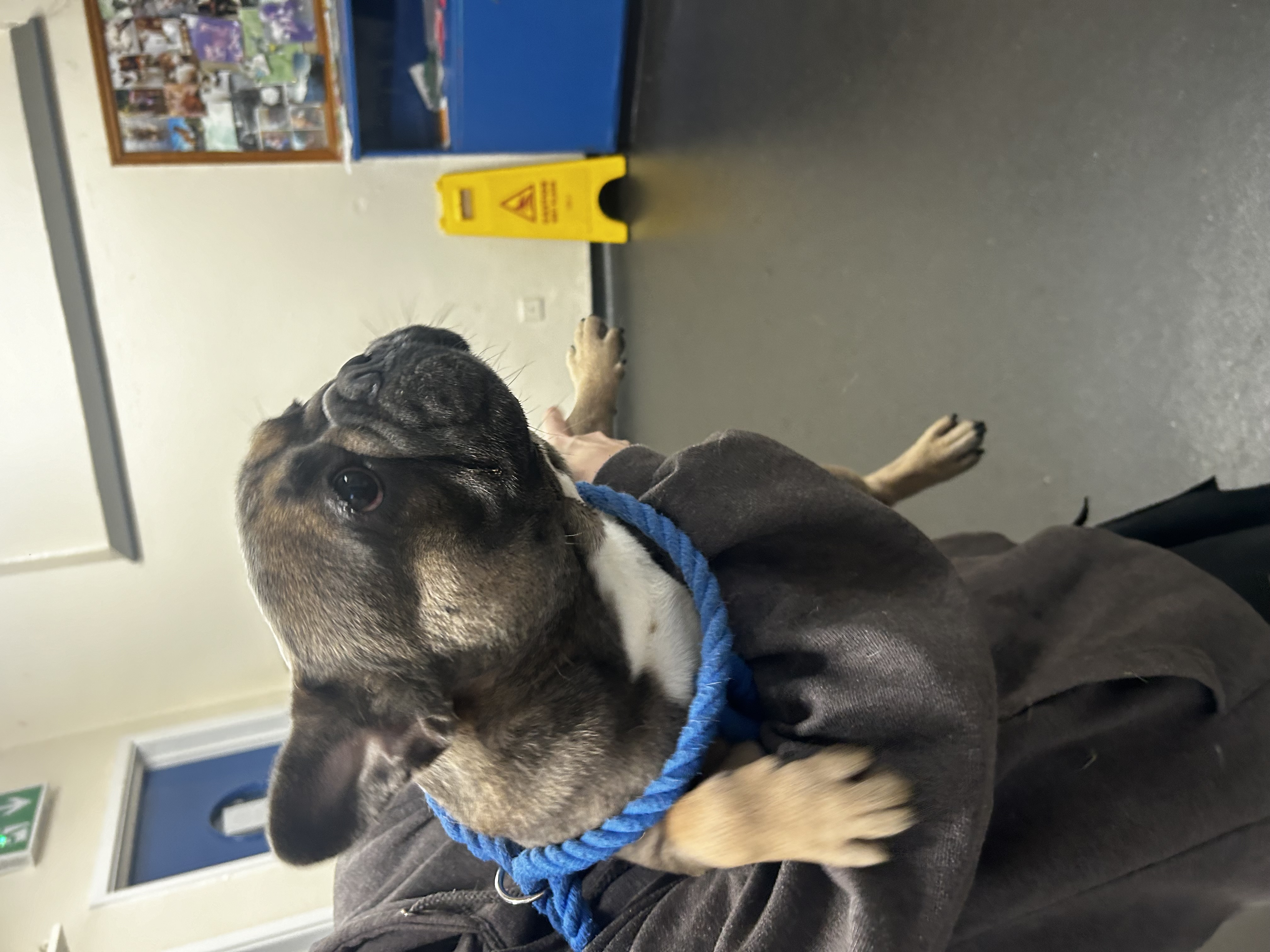 Blu was brought into kennels after being found roaming as a stray. We have named him Blu & aged him around 3 years old. We have seen no negative reactions from him towards other dogs in kennels. Blu tries to stay clean in his kennel which is a good indicator that he is house trained. As French bulldogs usually suffer from BOAS, he may require surgery in the future for it & adopters must bear this in mind. Blus temperament is friendly, fairly confident & he is food driven! He would make the perfect companion in a frenchie loving home.