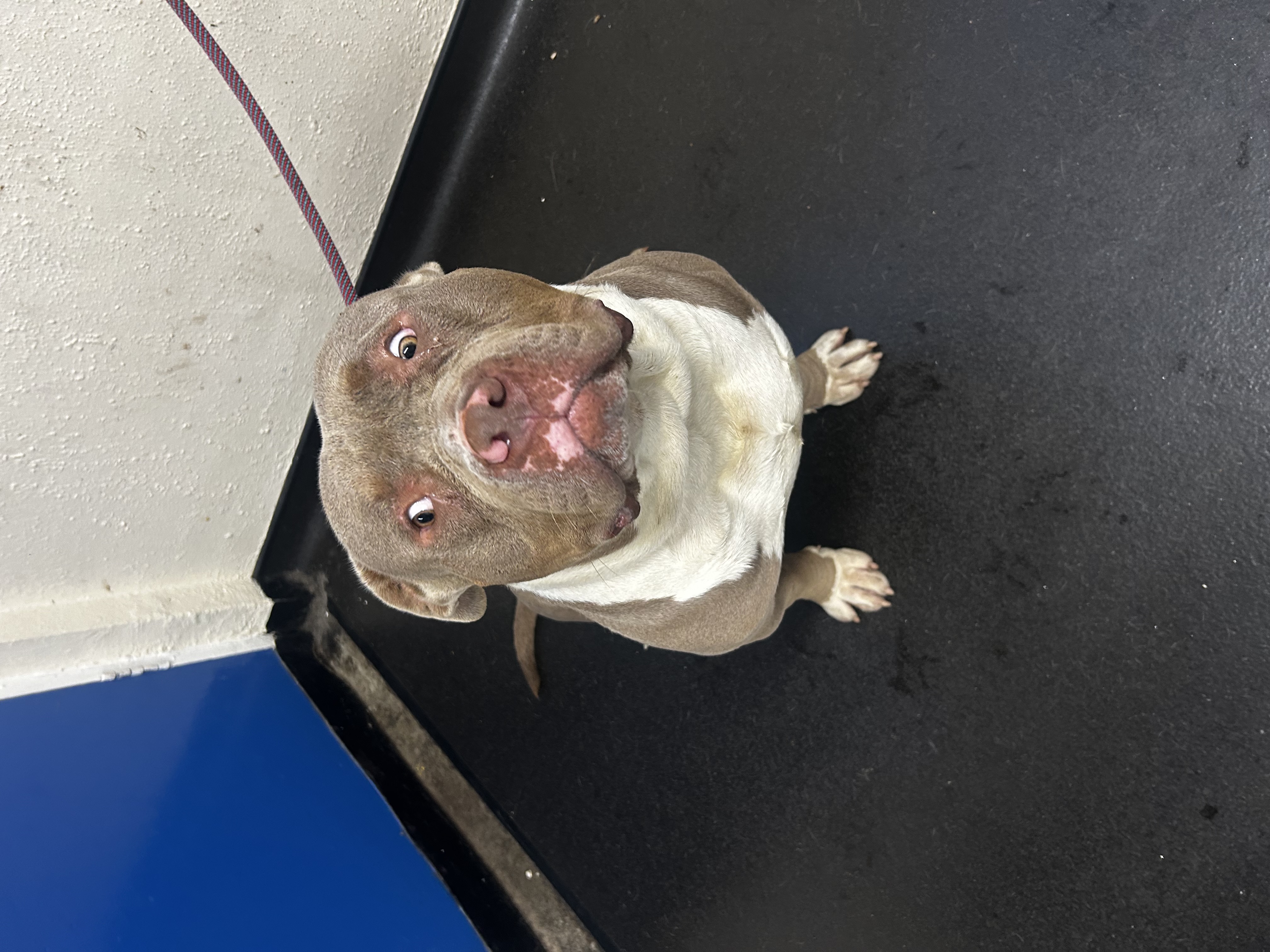 This lovely boy was brought into kennels after being found roaming as a stray for a couple of days. We have aged him around 2 years and named him Spud. Spud is a large stocky mastiff cross. Please note he is NOT a banned breed & has been assessed by a police dog liaison officer to confirm. Spud was a little timid on arrival but never showed any signs of aggression & was easily won over with a couple of gravy bones. Spud is strong but fairly steady on the lead & walks quite nicely. Spud has shown no negative reactions towards other dogs in kennels. Spud tries to stay clean in his kennel but may need a gentle reminder when it comes to housetraining. Please note spud is larger than he looks in his photos, we estimate that he weighs around 50kgs. Spud will make a great companion!