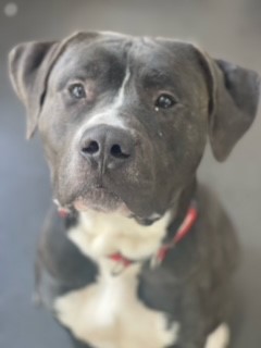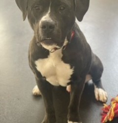 This lovely boy is approximately only 1 year old, he is full of energy. He knows basic commands such as “sit” and seems to be housetrained. He does however need to learn a few “manners”, he extra large and very boisterous and likes to jump up at people. For this reason we are looking for a home with no young children. He is very strong on the lead and will need a strong handler. We have seen no issues around other dogs in kennels.