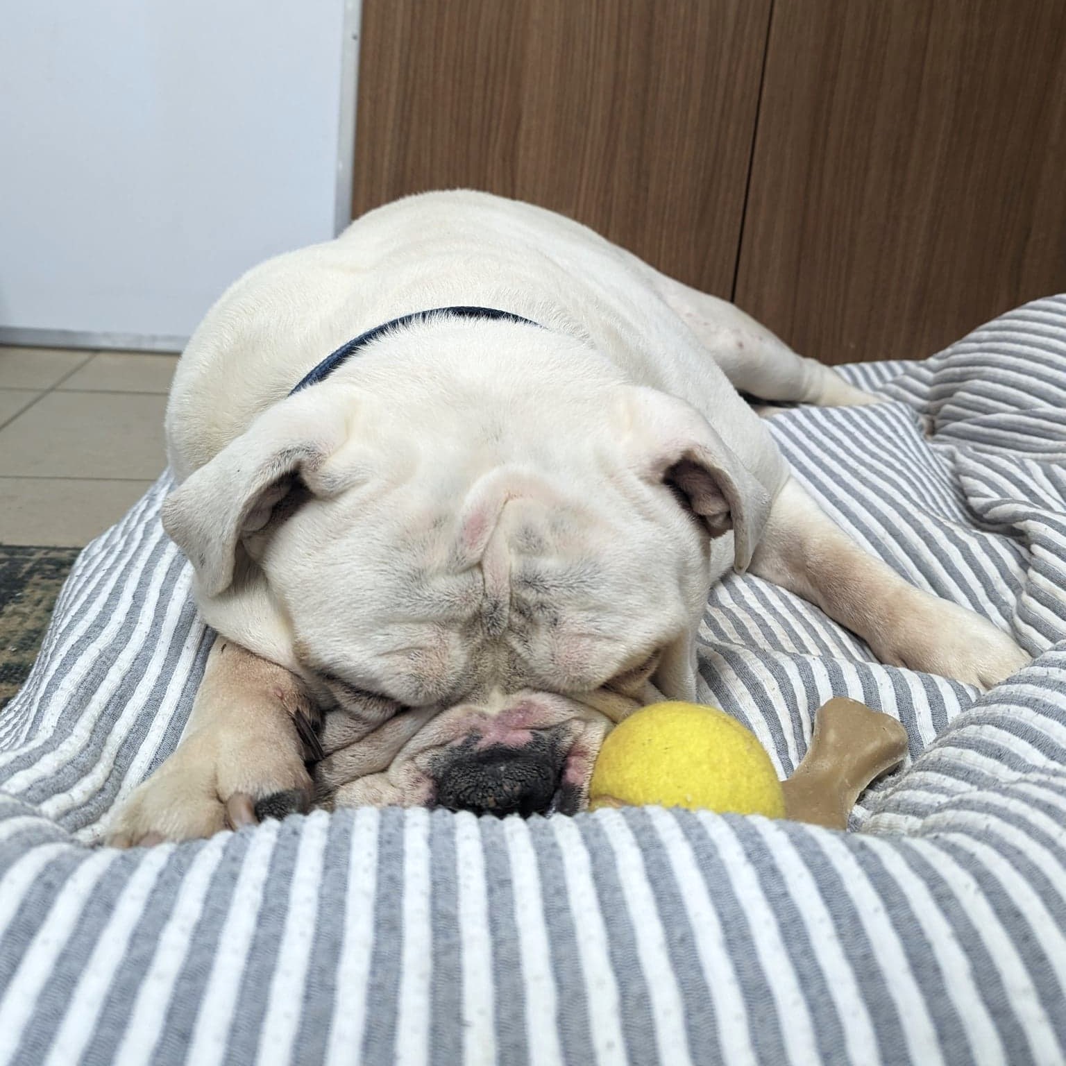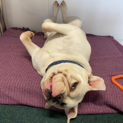 I’m a laid-back kind of guy who enjoys a leisurely stroll and loves to snooze once we’re back. Playtime is fun too, I love a daily zoomies session and lots of belly rubs too. I’m a low maintenance old boy, where a short walk, some playtime, and a cosy sofa or bed to lounge on sound like heaven to me.