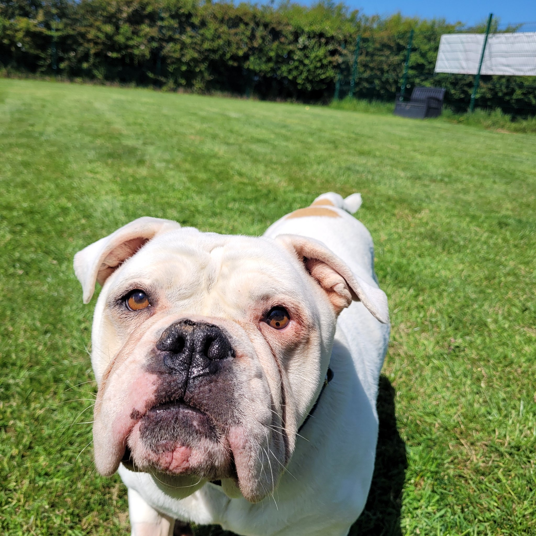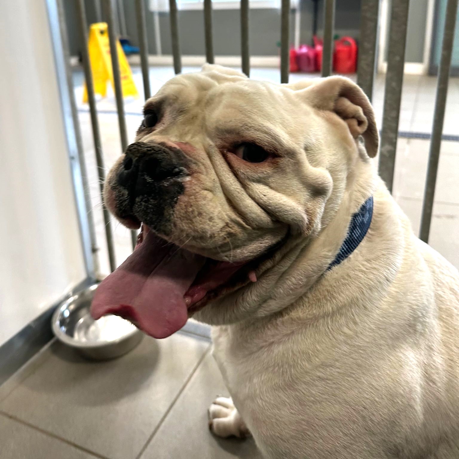When it comes to housemates, the team here would prefer me to be the only dog in the home or another nice female plodder.  I’m a senior boy who just wants a quiet life. I might be okay with cats – I doubt I’d bother chasing them anyway. Due to my size, living with small children isn’t the best fit for me, but teenagers should be just fine.