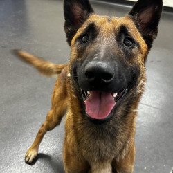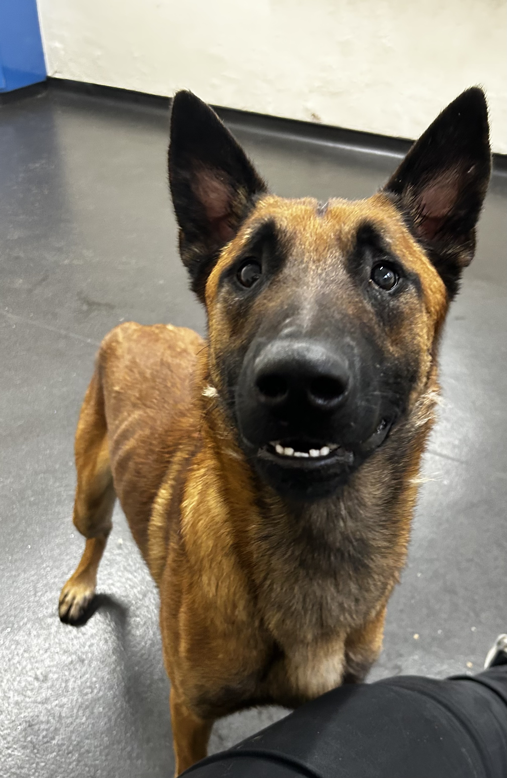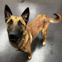 This lovely boy was brought into kennels after being found roaming as a stray. He has been friendly with staff since he arrived. He needs an active breed experienced home with plenty of time & energy for training. We have seen him react negatively to dogs walking past his kennel but this may be caused by the stress of kennels. He would need to be in an only dog until he is further socialised.