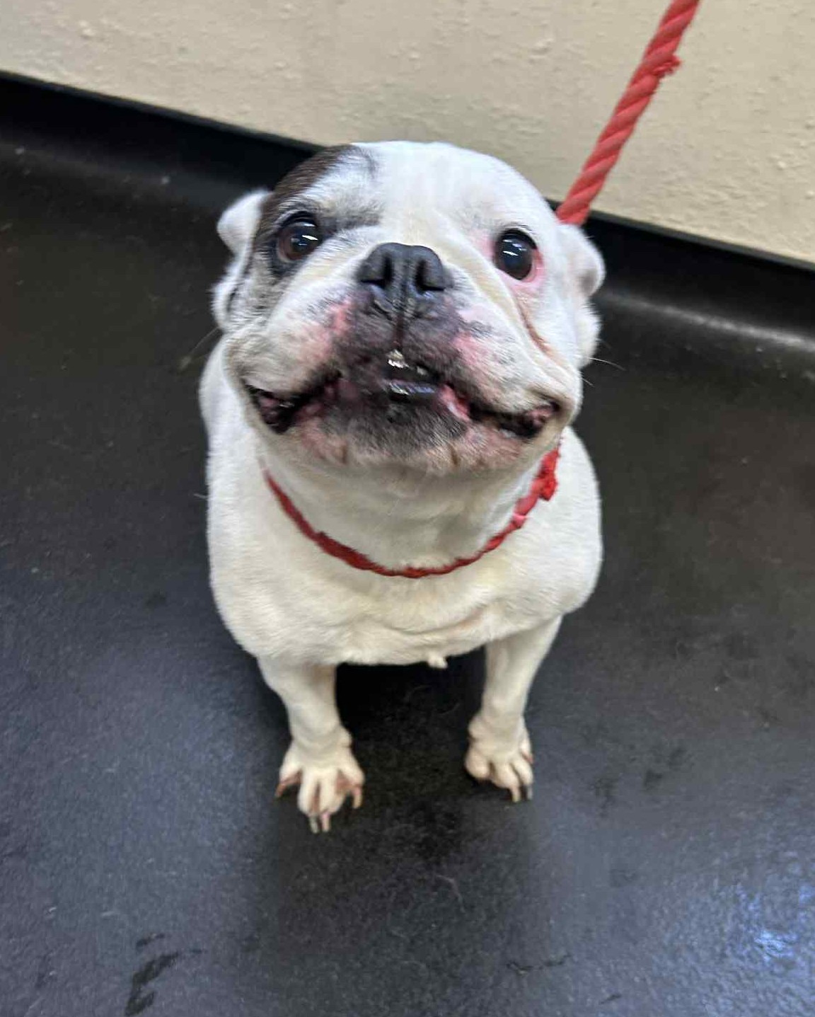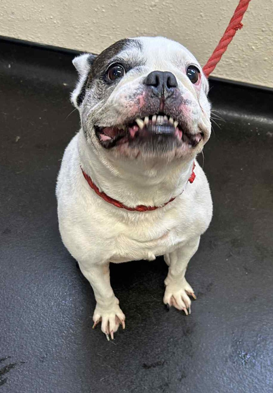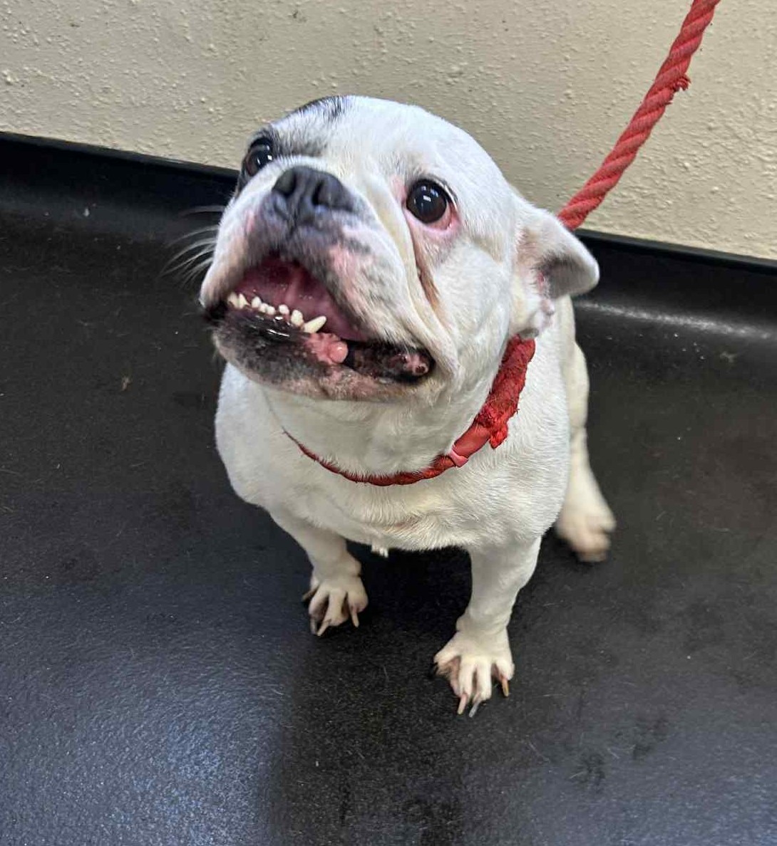 Poppy is a lively 9 year old French Bulldog who was found straying. Poppy is a energetic and happy girl. She will need to be a only pet as she likes her own space and will react to dogs. Experience with reactive dogs would be preferable. Due to her giddy nature she will be suitable for older children only. Poppy is very clean in her indoor kennel which is a good indication she is house trained. Poppy would love to find her forever home.