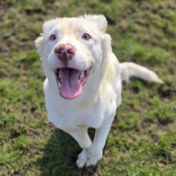 Fabulous Falcor was found sadly tied up abandoned. He hasn’t let this get him down and he is a sweet, playful and fantastic boy. Falcor wasn’t microchipped so we don’t know his exact age but he is around 10 months approx. He is medium sized and a beautiful unusual looking boy who still acts very puppy like. We think Falcor could be a Husky Retriever Collie mix possibly. Falcor is already neutered. He is a playful, uncoordinated and loveable boy. He seems ok with other dogs so could possibly live with another pending successful introductions. He seems to know basic commands but will need this training continuing with his new family. Falcor loves people, sometimes a little too much and despite being neutered he is a bit of a frisky boy, he needs to learn that humping people isn’t the best way to make friends, due to this we feel older children and adults only home would be best. Falcor can’t wait to meet his forever family that will show him he doesn’t have to worry about being abandoned ever again.